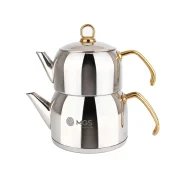 کتری استیل دو قوری یراق طلایی مدل MGS – k41012