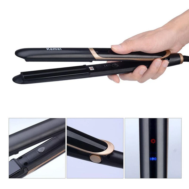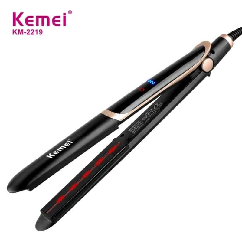 اتو مو حرفه ای برند کیمی Kemei مدل 2219-KM دارای صفحات باریک از جنس نانو سرامیک می باشد صفات نانو سرامیک از کشیدگی مو جلوگیری می نمایند و باعث درخشش و براقی موها بعد صاف شدن می شوند.