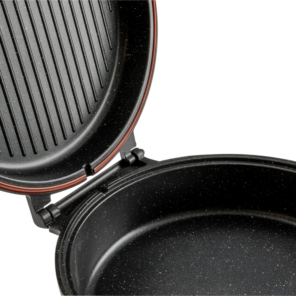 تابه 28 رژیمی گرد طرح ایتالیا B برند MGS با طراحی مدرن و پوشش گرانیتی نچسب، انتخابی بی‌نقص برای کسانی است که به آشپزی سالم و کم‌روغن اهمیت می‌ دهند. این تابه با روکش مقاوم و ضدخش، امکان پخت راحت انواع غذاها را فراهم می‌ سازد و شست‌وشوی آن نیز به‌سادگی انجام می‌ شود. ظاهر گرد و جمع‌وجور آن علاوه بر زیبایی، باعث می‌ شود فضای کمتری در آشپزخانه اشغال کند.