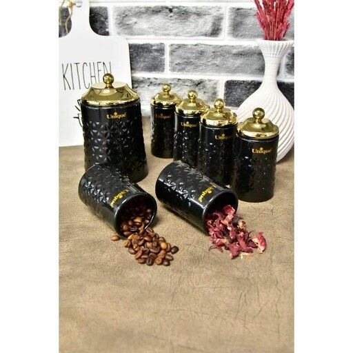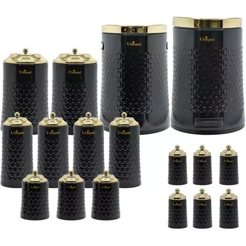 “سرویس آشپزخانه 17 پارچه گلکسی مشکی طلایی یونیک 4629 ” با  زمینه مشکی شامل قوطی های بسیار با کیفیتی است که در اندازه های مختلف تولید شده اند. میتوانید از این قوطی ها برای نگهداری مواد غذایی مختلف استفاده کنید. برای مثال حبوبات، نمک، برنج، قند و شکر، ادویه جات و … . همچنین این سرویس آشپزخانه یونیک دارای یک سطل زباله بزرگ است.