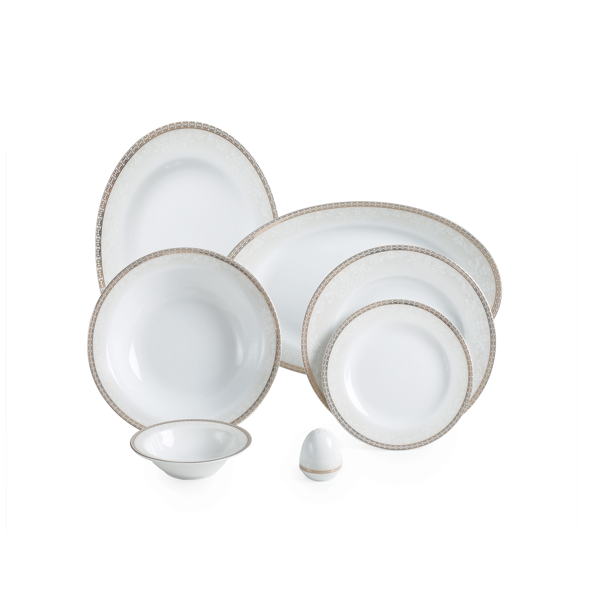 این سرویس الهام‌گرفته از طراحی‌های کلاسیک ایتالیایی است و با جزئیات طلایی چشم‌نواز، حس تجمل و اصالت را به میز شما می‌آورد. کیفیت درجه‌یک و لعاب براق آن تضمین‌کننده ماندگاری طولانی‌مدت است.