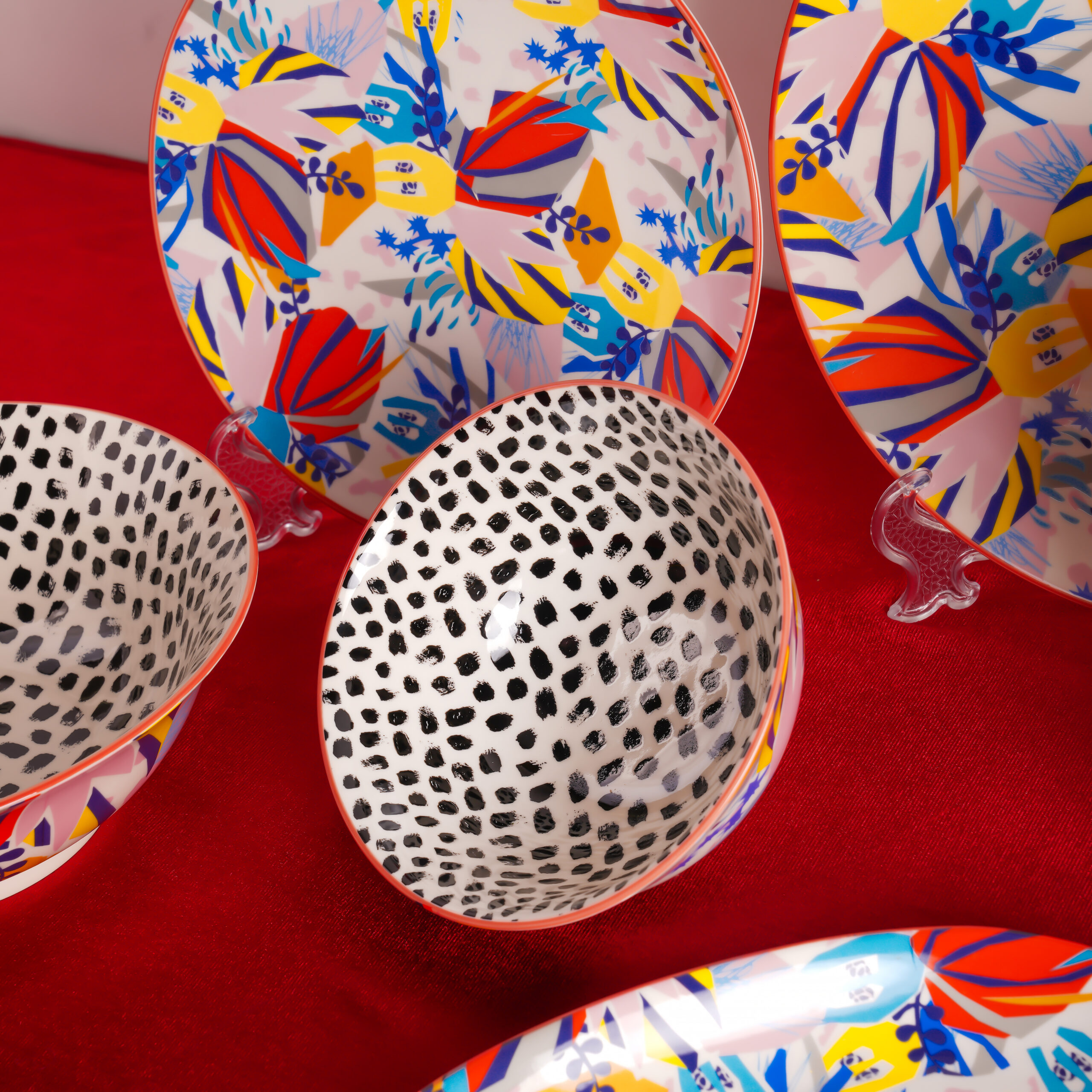 سرویس غذاخوری طرح گلدار دنی هوم 4 نفره با طراحی لطیف و طرح‌های گل‌دار رنگارنگ، جلوه‌ای رمانتیک و دلنشین به میز غذا می‌بخشد. این رنگ‌ها و نقش‌ها مناسب مهمانی‌ها، روزمره یا حتی هدایای خاص هستند و فضای میز را زیباتر و صمیمی‌تر می‌کنند. کیفیت ساخت بالا و لعاب مقاوم این سرویس، استفاده روزمره را ممکن کرده و دوام آن را تضمین می‌کند.