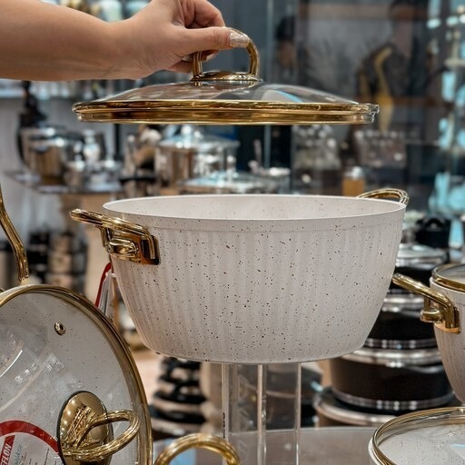 سرویس قابلمه لاینز 10 پارچه سفید، یکی از زیباترین و کاربردیترین انتخابها برای آشپزخانههای مدرن است. این سرویس با طراحی مینیمال و بدنهای مقاوم از جنس آلومینیوم با روکش گرانیت نچسب ساخته شده که پختوپز سالم و آسان را برای شما فراهم میکند. کف چندلایه قابلمهها باعث پخش یکنواخت حرارت میشود و غذا بدون سوختگی و با کیفیت عالی آماده خواهد شد. دربهای پیرکس مقاوم به همراه سوپاپ بخار، امکان مشاهده مراحل پخت را فراهم کرده و دستههای استیل محکم، ایمنی و راحتی بیشتری هنگام استفاده ایجاد میکنند.
