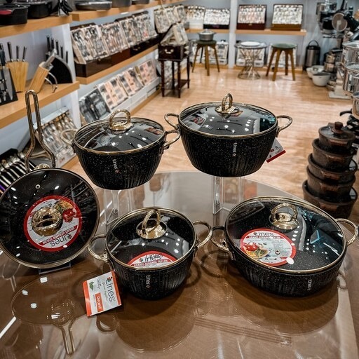 • کف چندلایه: کف قابلمه‌ها دارای لایه‌های مقاوم (تا ۱۰ لایه) برای پخش یکنواخت حرارت است.