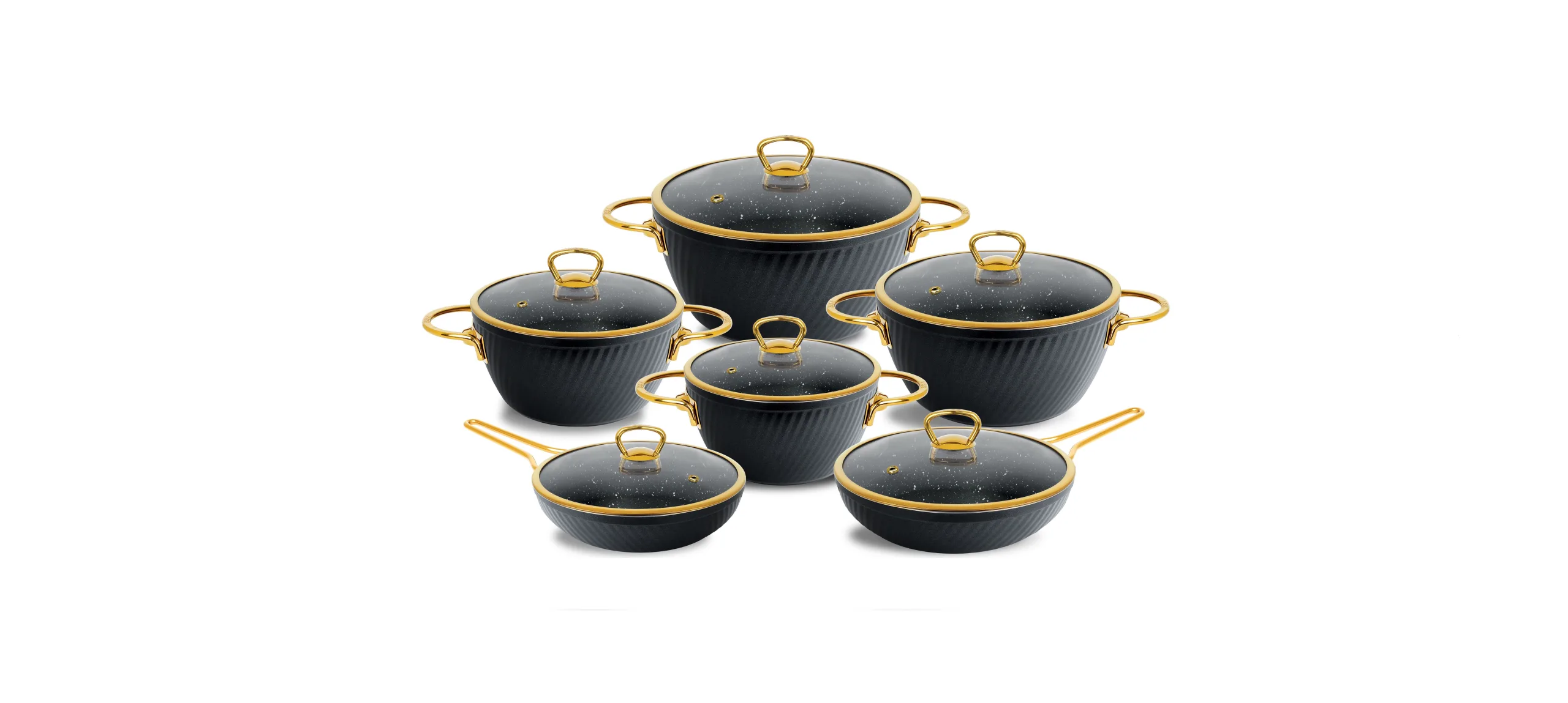 شامل : تابه تک دسته سایز 20 , تابه تک دسته سایز 24 , قابلمه سایز 20 , قابلمه سایز 24 , قابلمه سایز 28