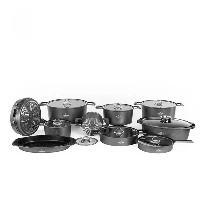 سرویس قابلمه 19 پارچه راکلند مدل آلمانی خاکستری یک سرویس ظروف پخت و پز عالی برای هر سلیقهای است.
