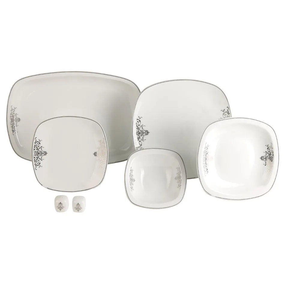 سرویس کواترو 27 پارچه مونت کارلو پلاتین درجه عالی – چینی زرین از جدیدترین و شیکترین سرویسهای غذاخوری برند معتبر چینی زرین است. این سرویس با طراحی خاص و مدرن، ترکیب رنگ و لعاب بینقص و دوام فوقالعاده، انتخابی بیرقیب برای خانوادههایی است که به دنبال ترکیب زیبایی و کیفیت در آشپزخانه و میز پذیرایی خود هستند. چینی زرین بهعنوان برند پیشرو در تولید ظروف چینی، این سرویس را با بهرهگیری از تکنولوژی روز و مواد اولیه مرغوب طراحی کرده تا در کنار زیبایی، طول عمر بالایی نیز داشته باشد.