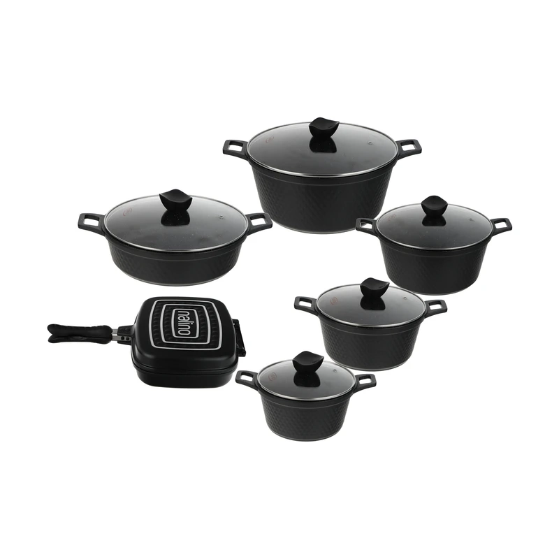 سرویس گرانیتی 12 پارچه Deniz نالینو ترکیبی از زیبایی و کیفیت است. پوشش گرانیتی نچسب و بادوام آن، آشپزی را آسان‌تر و سالم‌تر می‌سازد.