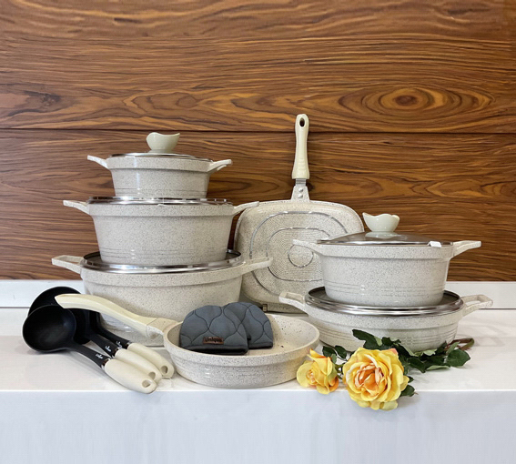 برند یونیک در مدل 7881 علاوه بر زیبایی، به کیفیت و سلامت غذا نیز توجه ویژهای داشته است. پوشش داخلی این ظروف از جنس گرانیت مرغوب است که خاصیت نچسب بودن عالی دارد و به شما اجازه میدهد با کمترین میزان روغن، غذاهایی سالم و لذیذ طبخ کنید. بدنه مقاوم این سرویس حرارت را به صورت یکنواخت پخش میکند تا غذا کاملاً جا بیفتد و ته نگیرد. طراحی دستهها و دربهای این سرویس به گونهای است که استفاده از آن بسیار راحت بوده و شستشوی ظروف نیز به دلیل کیفیت بالای روکش، در کمترین زمان انجام میشود.