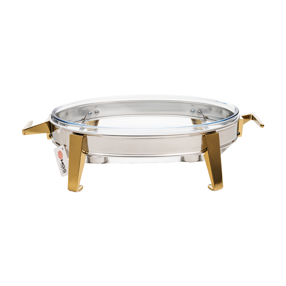 سوفله بزرگ بیضی طلایی MGS مدل 4105 انتخابی لوکس و کاربردی برای کسانی است که به زیبایی و کیفیت در پذیرایی اهمیت می دهند. این سوفله با طراحی بیضی شکل و رنگ طلایی درخشان، جلوهای مجلل به سفره و میز مهمانی شما می بخشد. بدنه مقاوم و جنس باکیفیت آن، علاوه بر زیبایی، دوام و طول عمر بالایی را تضمین می کند. این محصول به گونهای طراحی شده که غذا را برای مدت طولانی گرم نگه داشته و پذیرایی شما را حرفهایتر جلوه دهد.