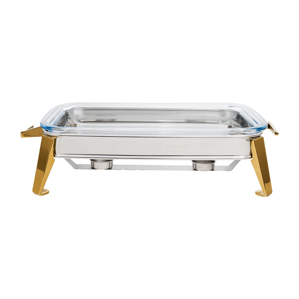 سوفله بزرگ مستطیل طلایی MGS – OW4101G با طراحی مدرن و رنگ طلایی درخشان، یکی از بهترین گزینه‌ ها برای سرو غذا در مهمانی‌ ها و مجالس رسمی است. این سوفله با سایز بزرگ و فرم مستطیلی، فضای کافی برای سرو انواع غذاهای اصلی را فراهم کرده و میز پذیرایی شما را لوکس‌تر از همیشه نشان می‌ دهد. جنس استیل مقاوم و پوشش طلایی آن، علاوه بر زیبایی، ماندگاری و مقاومت بالا در برابر خط و خش را تضمین می‌ کند.