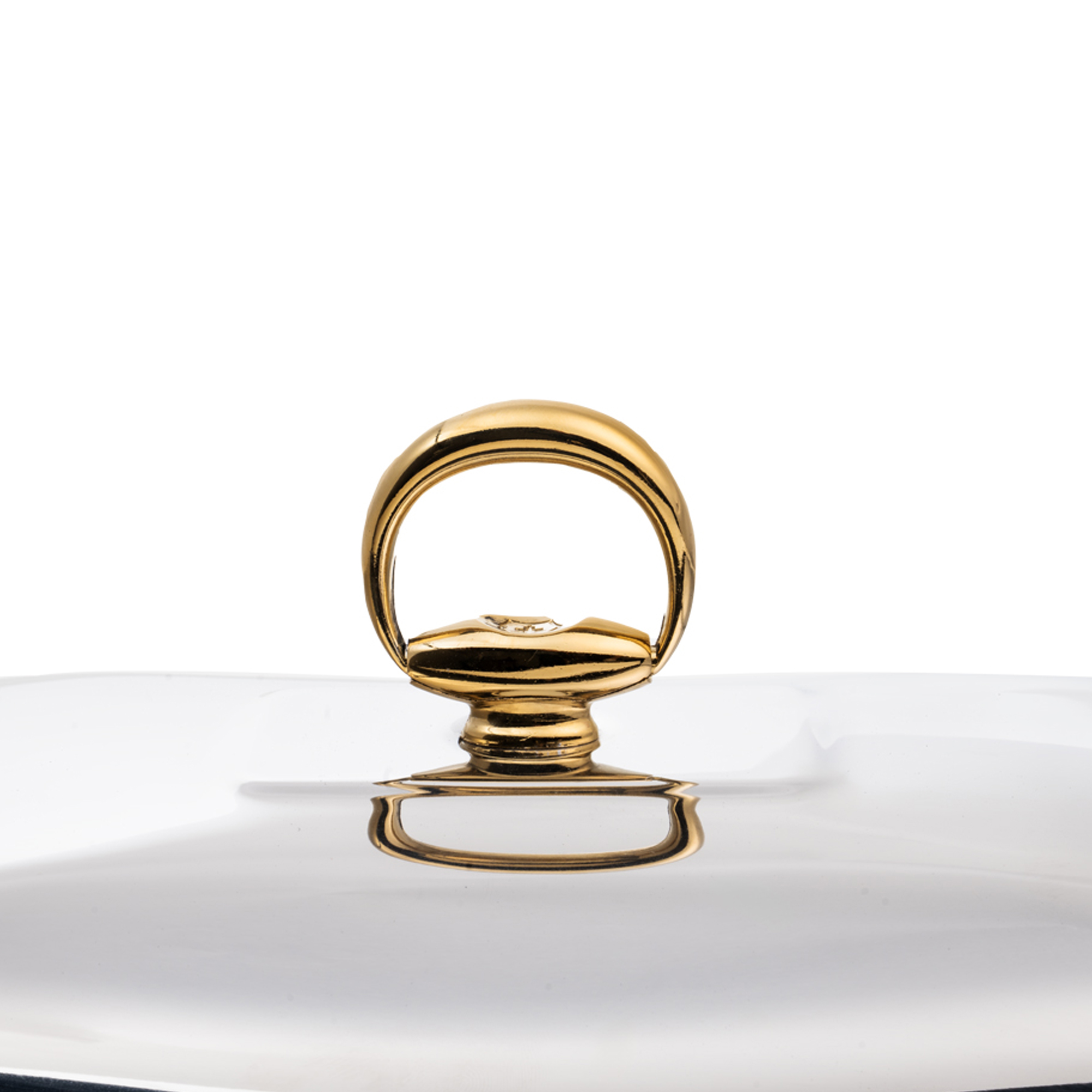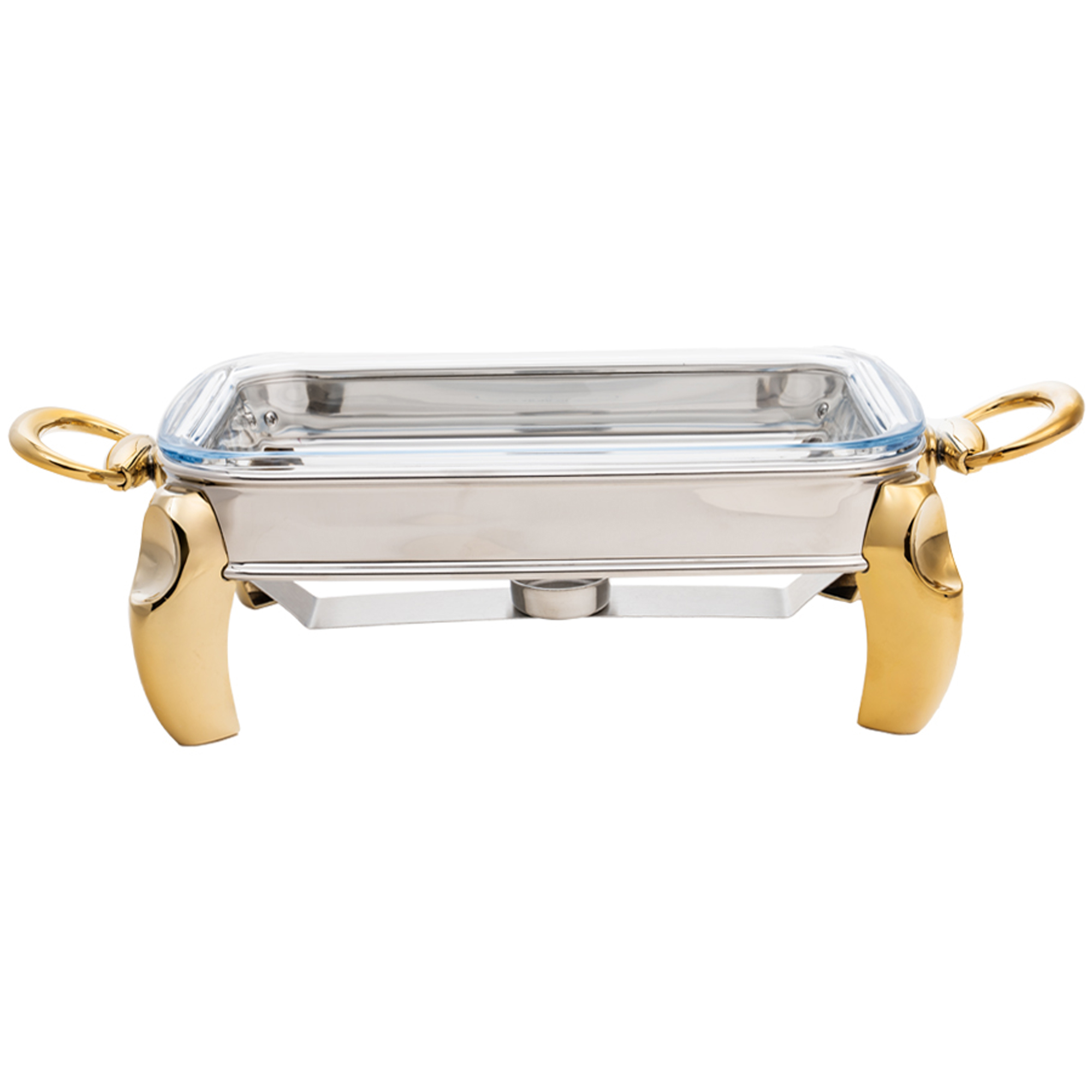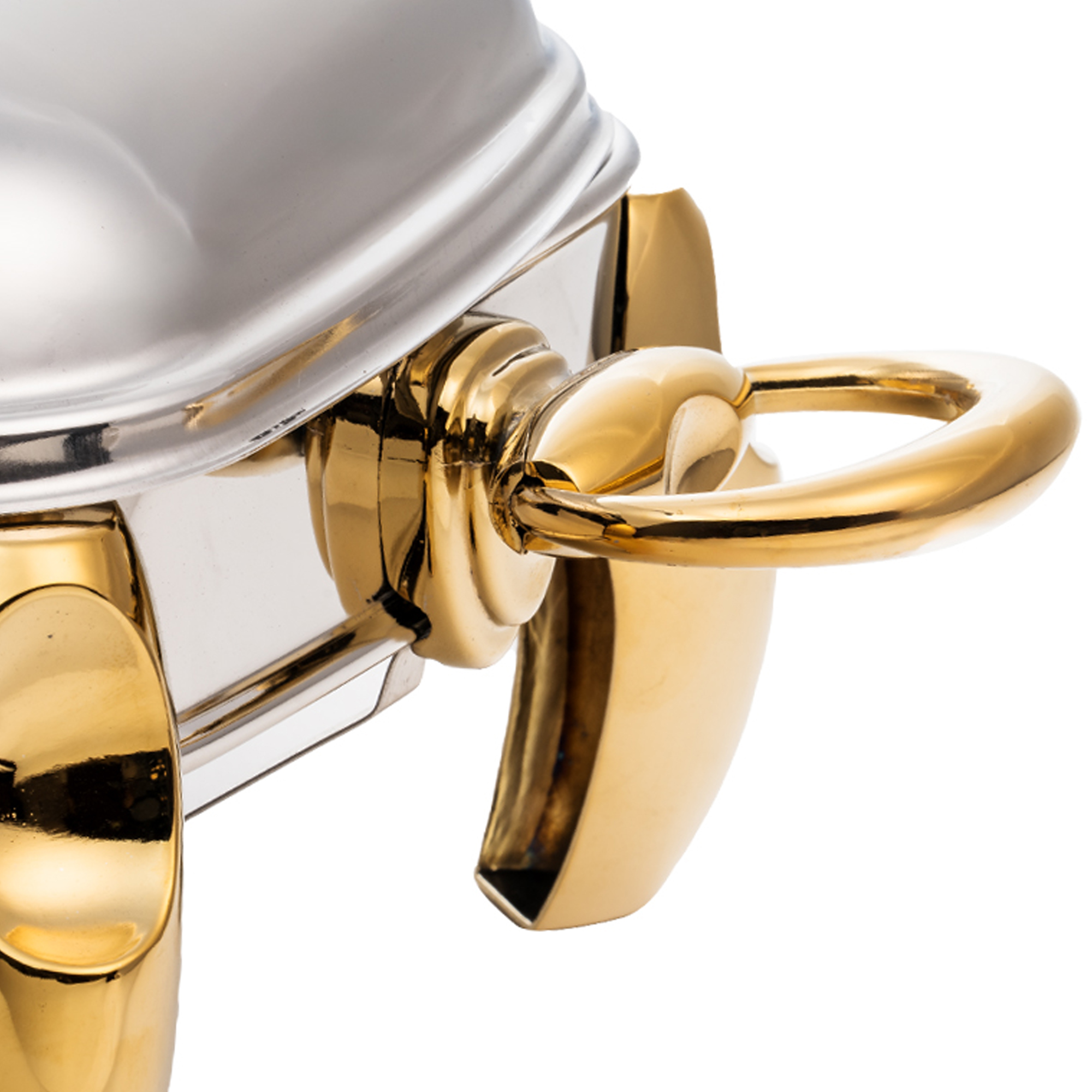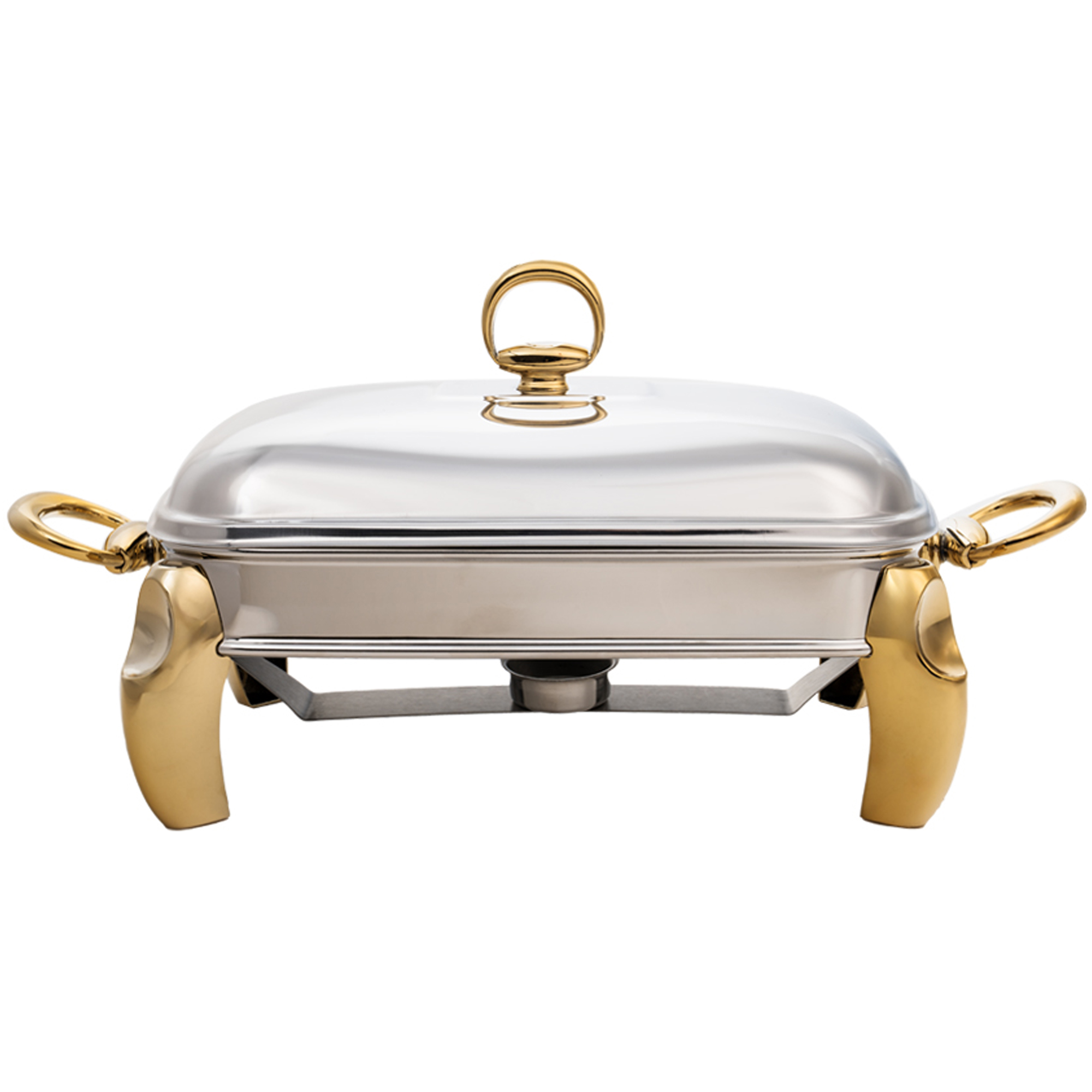 سوفله طلایی کوچک مستطیل MGS – OW3103G یکی از خاصترین محصولات برای سرو غذاهای گرم و زیبا کردن میز پذیرایی است. این سوفله با طراحی مستطیلشکل و روکش طلایی براق، جلوهای لوکس و چشمگیر به مهمانی ها و مجالس شما می بخشد. کیفیت ساخت بالا، استفاده از مواد مقاوم و دوام عالی، باعث شده این محصول انتخابی مطمئن برای استفاده طولانی مدت باشد.