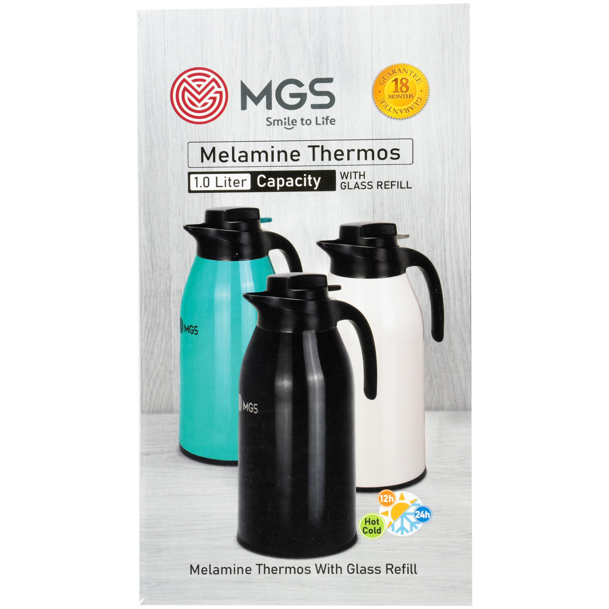 فلاسک 1 لیتر ملامین MGS کد FL50G یک فلاسک دسته دار با بدنه املامین است. این ابزار کاربردی 1 لیتر گنجایش دارد و به مدت 24 ساعت مایعات را در دمای ثابت نگه‌می‌دارد. شما می‌توانید بدون نگرانی از نشتی از این فلاسک در سفر یا پیک نیک استفاده کنید.