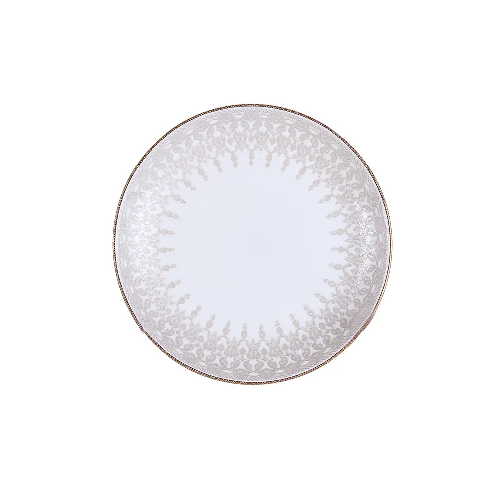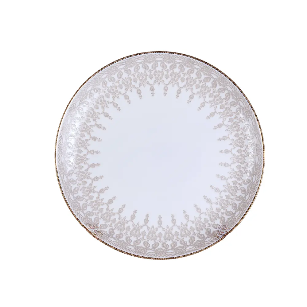 سرویس ۲۶ پارچه دیوالی ماهور کرم لومینارک یک مجموعه کامل از ظروف غذاخوری است که با رنگ کرم لطیف و طراحی مدرن، مناسب جهیزیه، مهمانی و استفاده روزمره میباشد. این سرویس شامل قطعاتی مانند بشقاب غذاخوری، پیشدستی، پیاله و کاسه است که هر کدام با فرم استاندارد و لعاب باکیفیت تولید شدهاند تا دوام بالایی در برابر استفاده مکرر و شستوشوی روزانه داشته باشند. طراحی هماهنگ و رنگ ملایم کرم باعث میشود این سرویس بهراحتی با انواع دکور و سرویسهای دیگر ترکیب شود و جلوهای منسجم به میز غذاخوری بدهد.