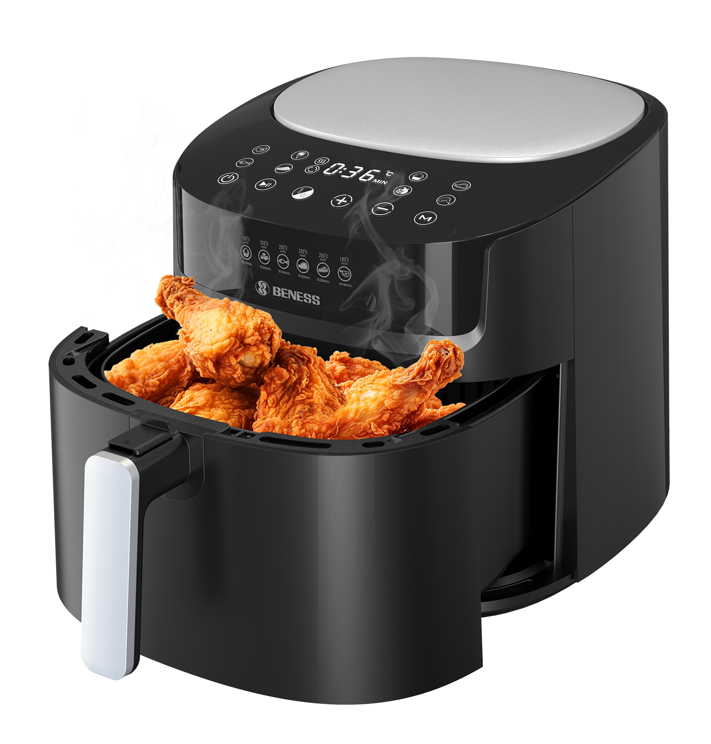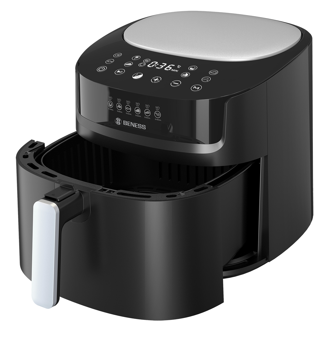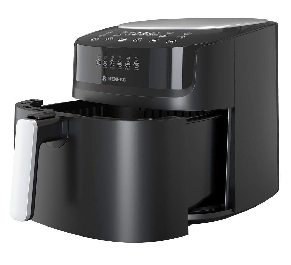 هواپز بنس BAS9005D با طراحی کاربرپسند و عملکردی هوشمند، پخت انواع غذا را با کمترین روغن ممکن امکان‌پذیر می‌سازد. این مدل با بهره‌گیری از فناوری گردش سریع هوا، بافت بیرونی ترد و درونی نرم غذا را حفظ می‌کند.