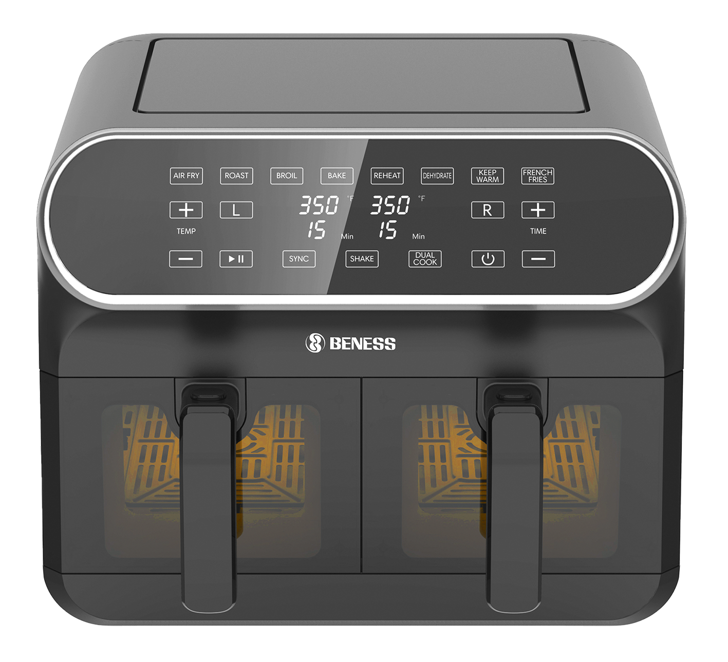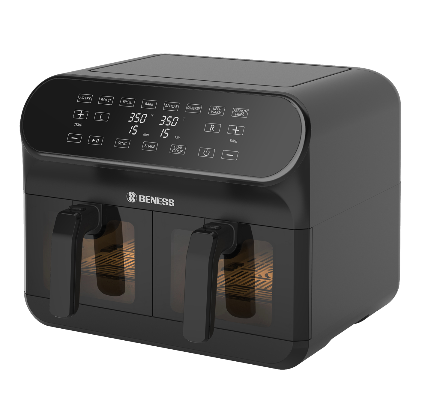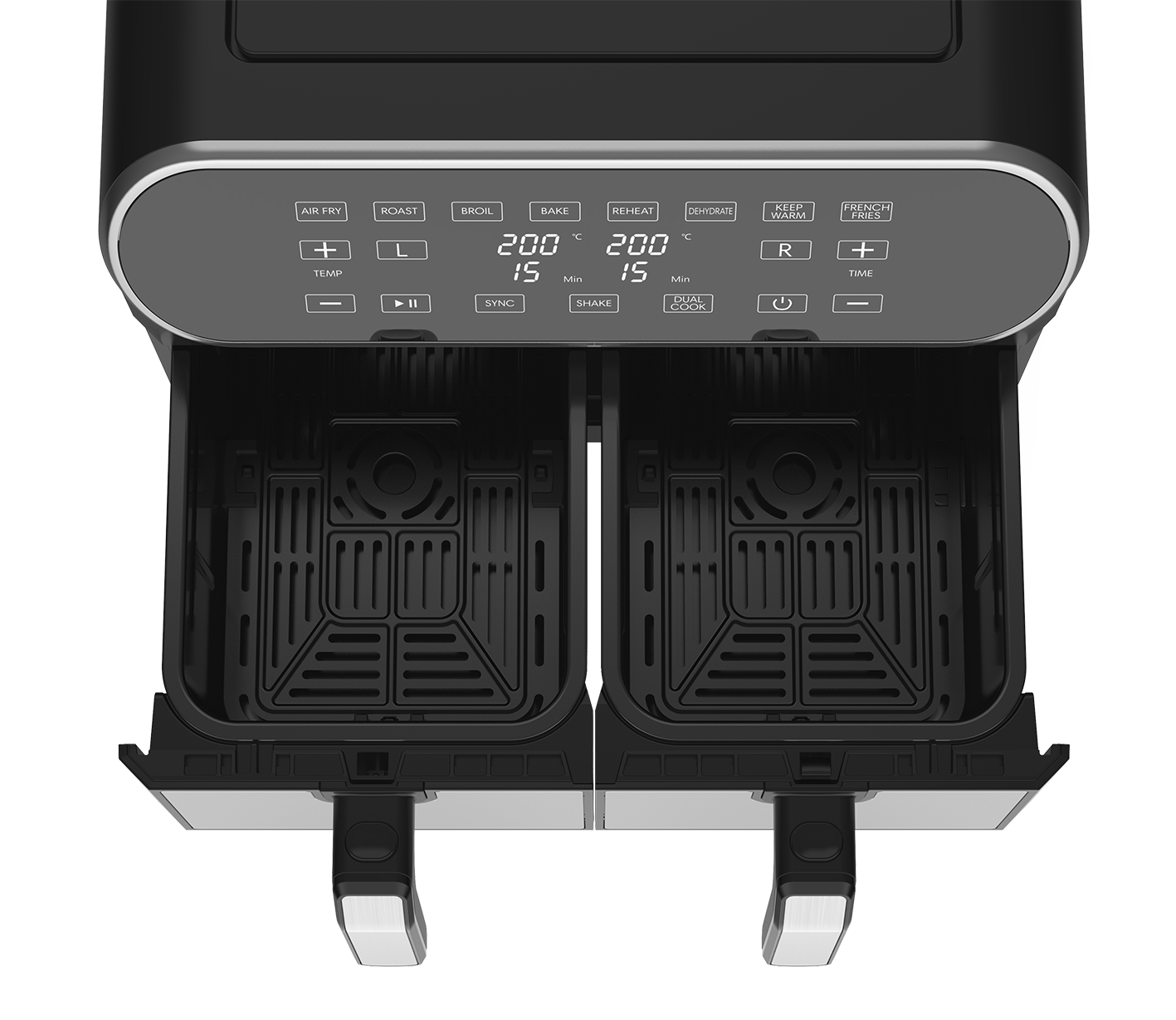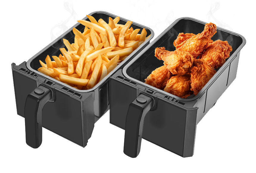 با استفاده از فناوری هوای چرخشی، هواپز D801T بنس غذاها را بهصورت یکنواخت و بدون نیاز به روغن سرخ میکند. سیستم دو مخزن مجزا به شما اجازه میدهد همزمان دو نوع غذا را با تنظیمات متفاوت آماده کنید.