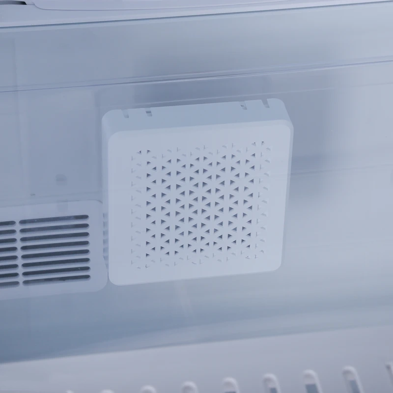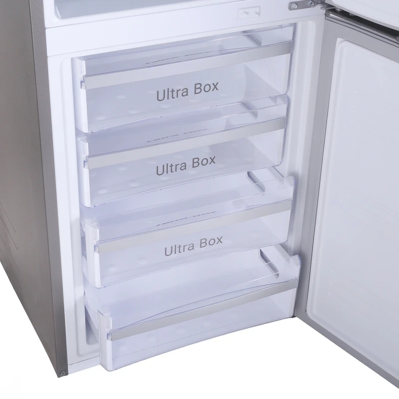 در قسمت فریزر، طراحی کشودار با تعداد مناسب کشوها امکان مرتب‌سازی و دسترسی ساده به مواد منجمد را فراهم می‌کند. همچنین، سیستم بدون برفک (No-Frost) باعث حذف نیاز به یخ‌زدایی دستی شده و نگهداری مواد منجمد را بسیار آسان‌تر می‌کند. نوار درزگیر آنتی‌باکتریال و فیلتر جاذب اتیلن نیز به حفظ کیفیت مواد غذایی کمک می‌کنند، در عین حال، سنسورهای هوشمند دمای داخلی، احساس اطمینان از عملکرد ایمن دستگاه را افزایش می‌دهند.